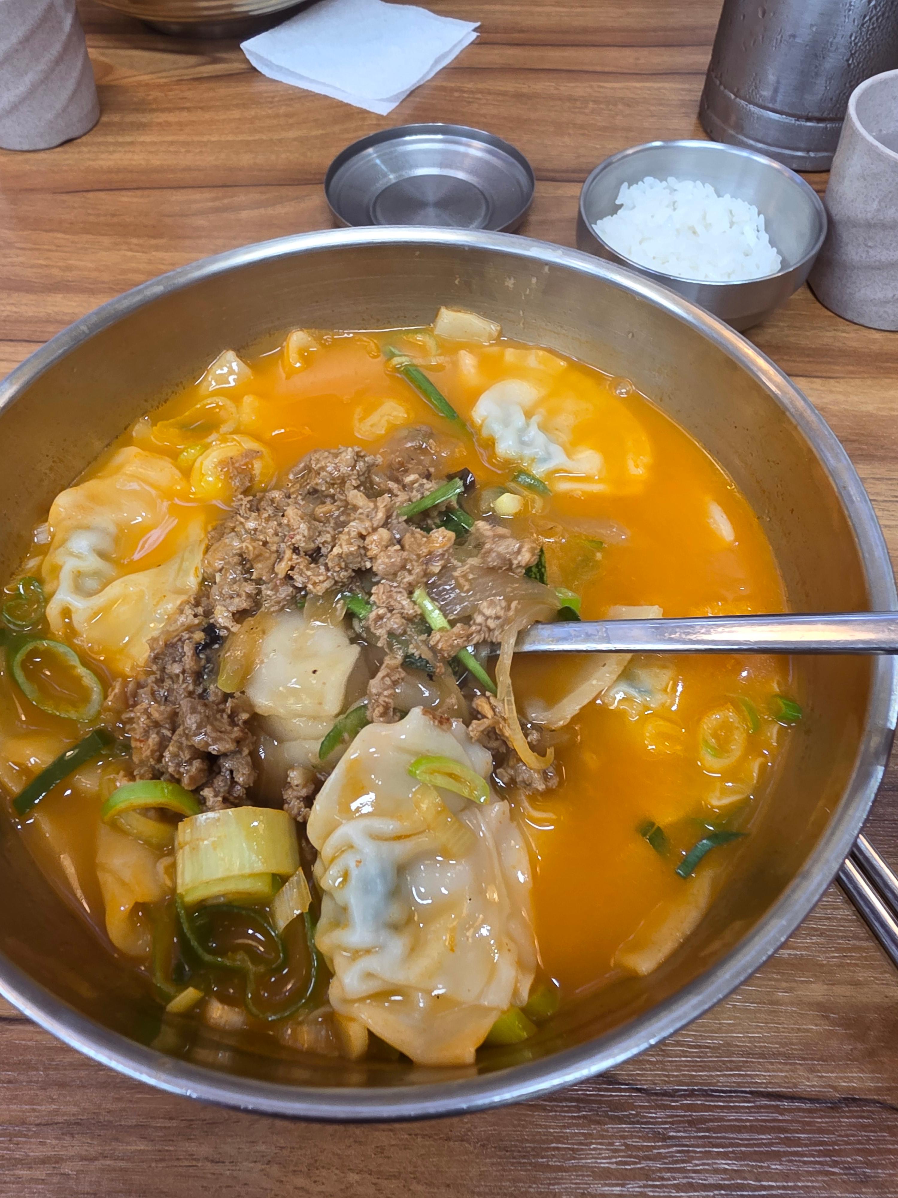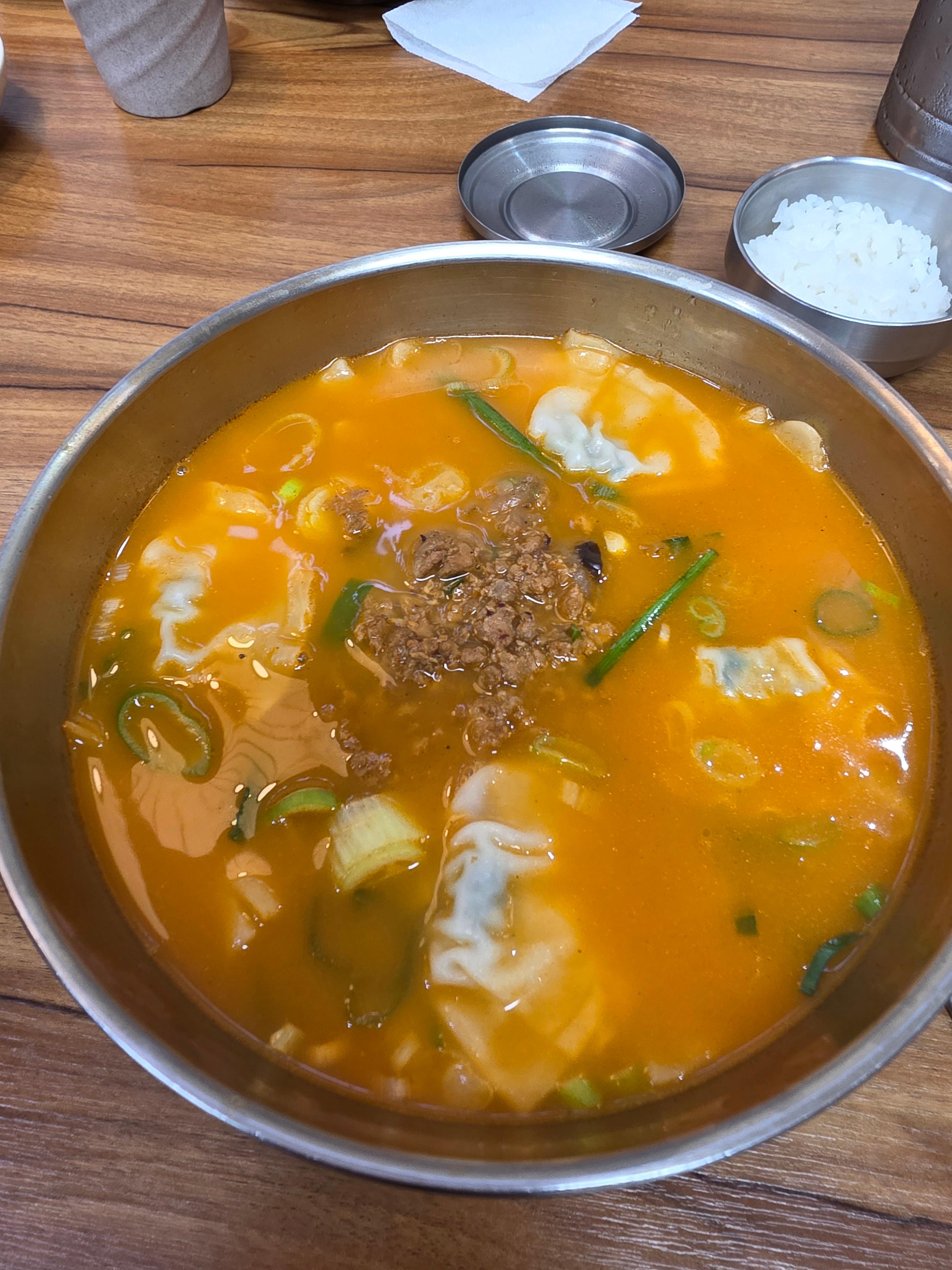 버섯, 애호박, 고추 등이 풍성하게 들어가 있어 식감도 다양하고, 한 그릇만으로도 충분히 든든했습니다. 특히 국물이 끝까지 짜지 않아서 마무리로 밥을 말아 먹기에도 좋았습니다. (Tip. 밥 큰공기로 주세요~하면 사장님이 인심좋게 주십니다)