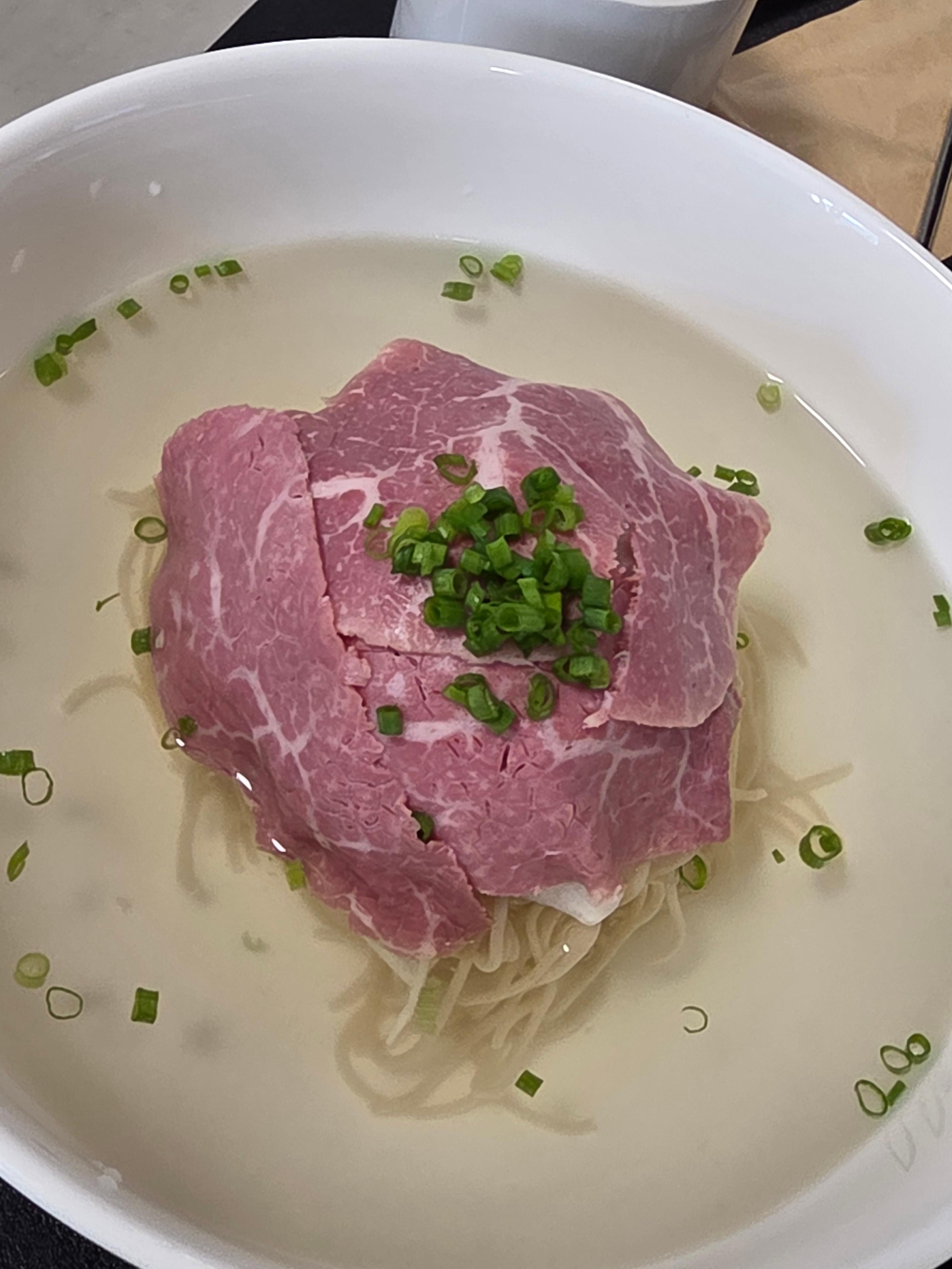 담백하고 은은한 육향이 매력적인 평양냉면. 면발은 거칠지 않고 부드러워 씹을수록 고소한 메밀 향이 느껴졌습니다. 국물은 자극적이지 않고 깔끔해서 끝까지 시원하게 먹을 수 있었습니다. 아이에게는 조금 싱거울 수 있지만, 어른 입맛에는 충분히 깊이 있는 맛이었습니다.