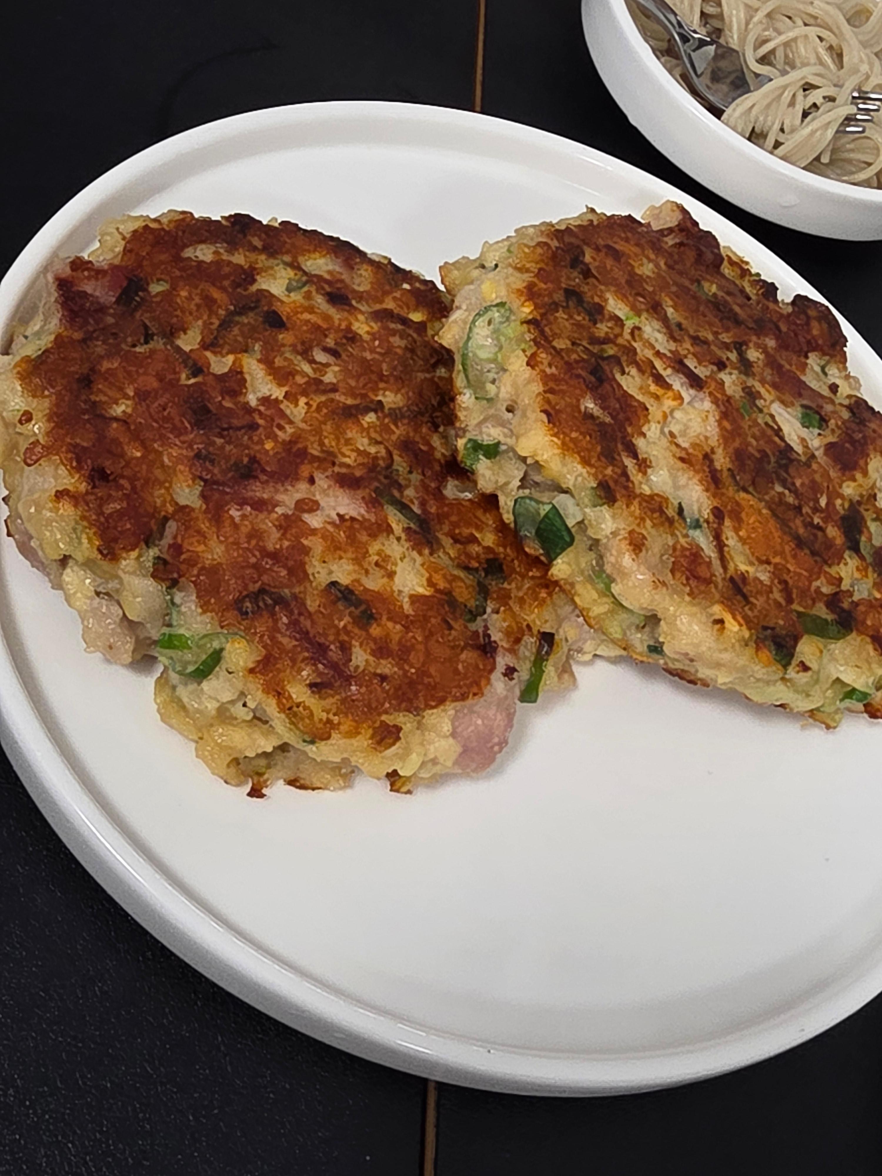 겉은 바삭하고 속은 촉촉한 녹두전. 기름이 과하지 않아 느끼함 없이 담백하게 즐길 수 있었습니다. 녹두의 고소함과 부재료의 식감이 잘 어울려, 사이드 메뉴로 제격이었습니다.