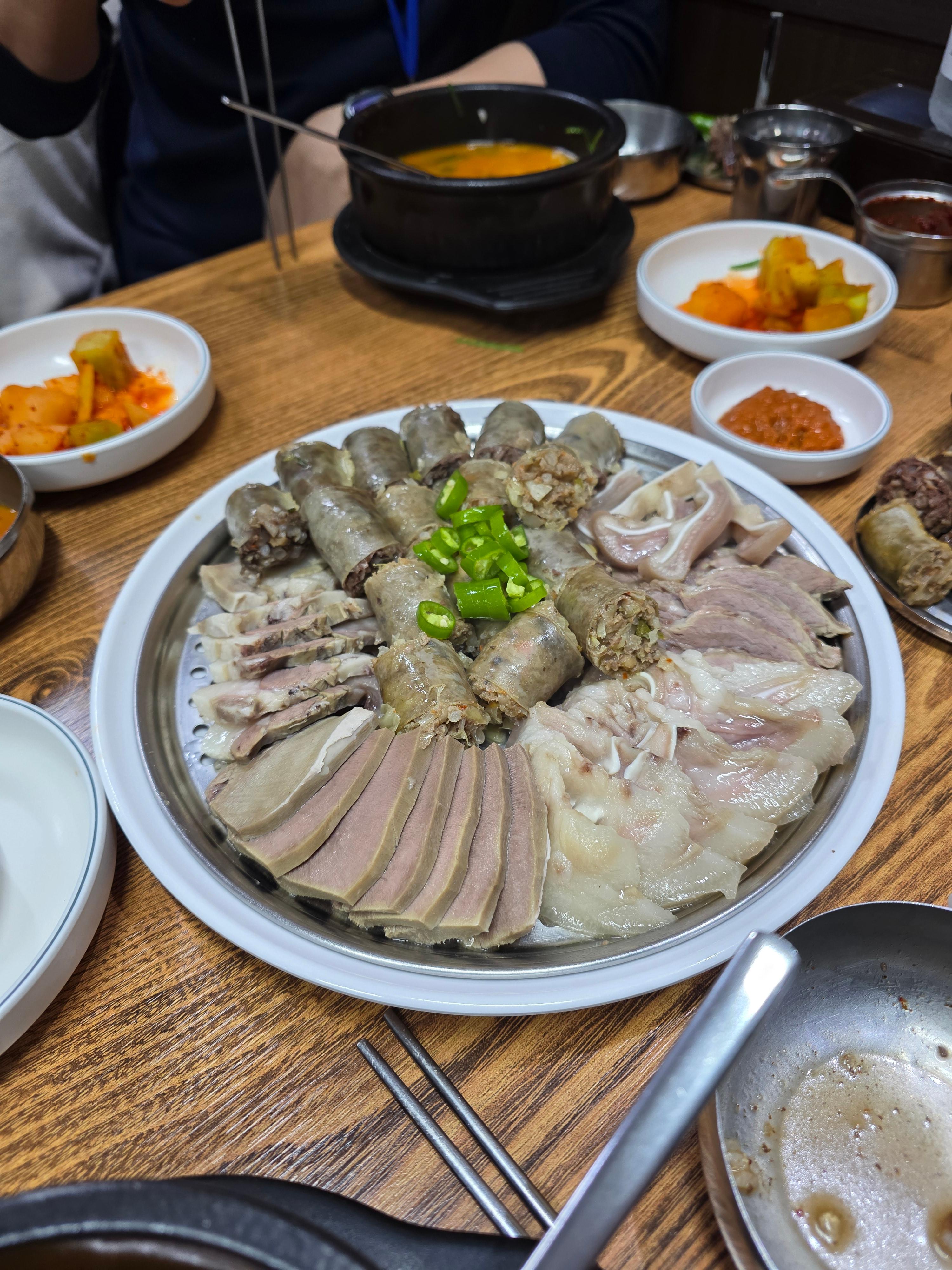 특히 수육+순대에 참기름을 바른 것이 인상적이었으며, 잡내 없이 삶아진 고기의 부드러운 식감이 순대국과 조화를 이룹니다.