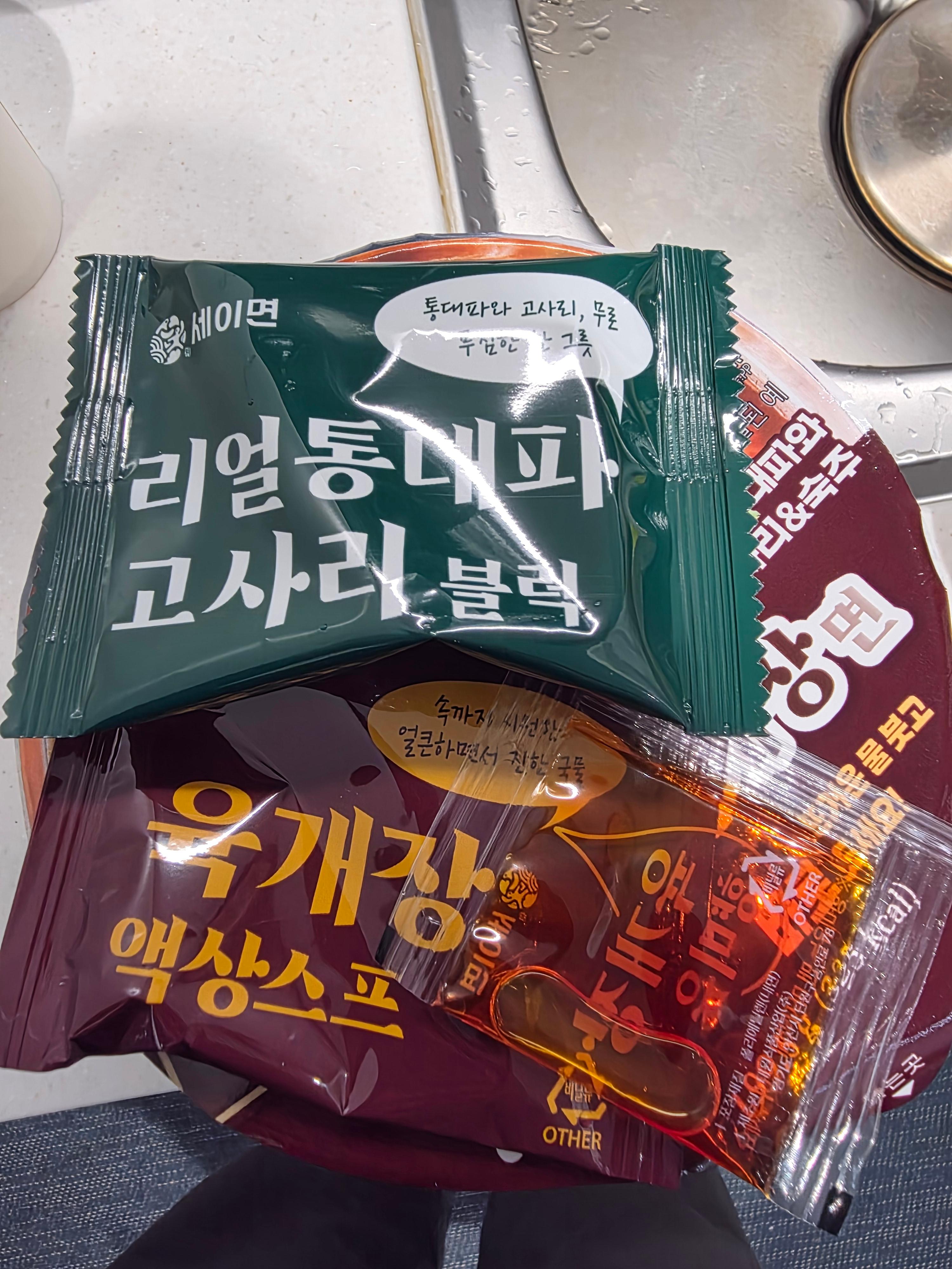 두 제품 모두 세이면 브랜드의 라면답게 높은 완성도를 자랑하며, 일반적인 컵라면에 비해 생면의 질감이나 국물 맛이 훨씬 뛰어납니다. 개인적으로는 매콤한 것이 땡길 땐 대팍육개장면, 속이 더부룩할 땐 진한곰탕면을 선택하고 있습니다.